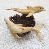 Artisan Hand Carved Wood Dolphin Sculpture 'Twin Dolphins' Item ID: 2669911938