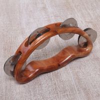 Artisan Handcrafted Teak Wood Tambourine from Bali 'Rhythmic Vibes' Item ID: 2671479699