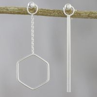 Artisan Handmade 925 Sterling Silver Earrings Hexagon Chain 'Icy Holiday' Item ID: 2671801488