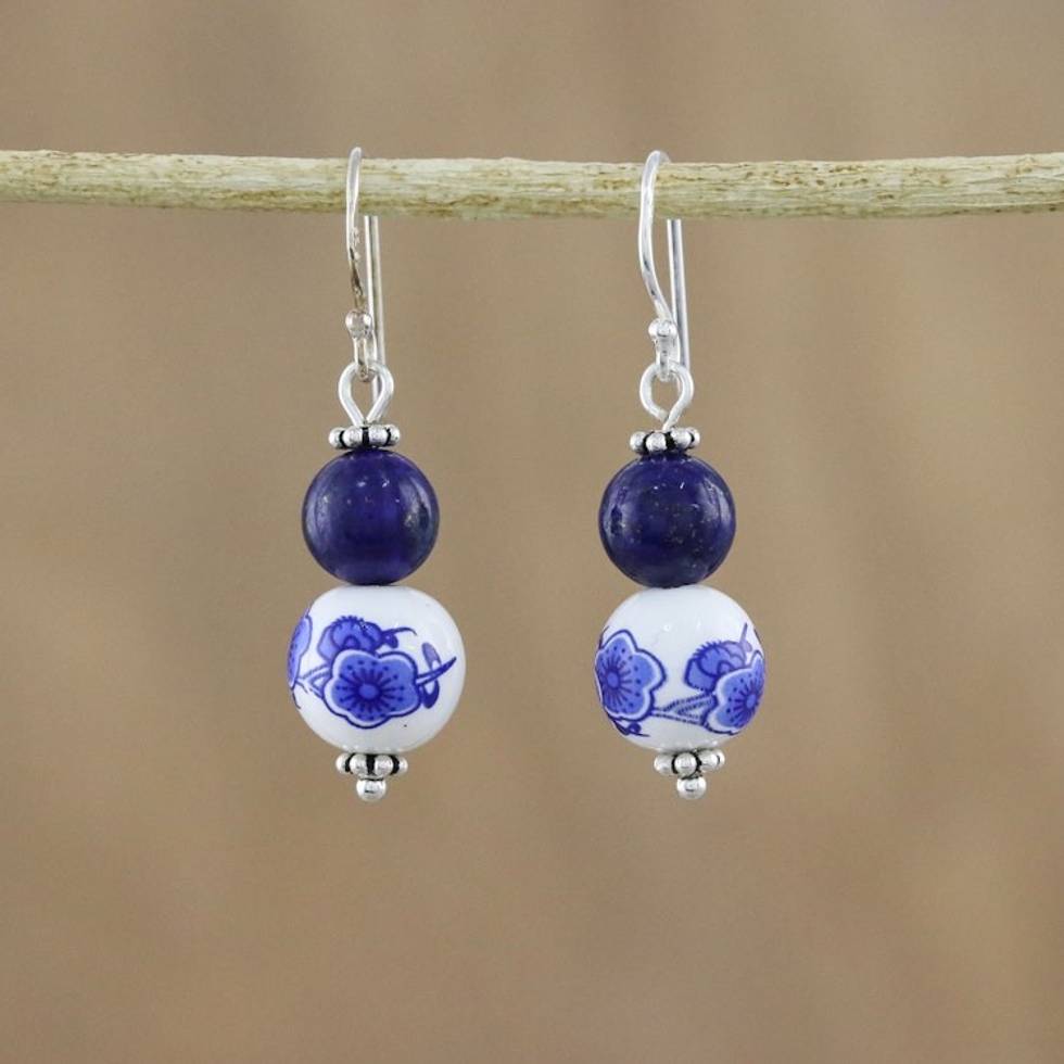 Artisan Handmade 925 Sterling Silver Lapis Lazuli Earrings 'Ming Lotus' Item ID: 2669930456