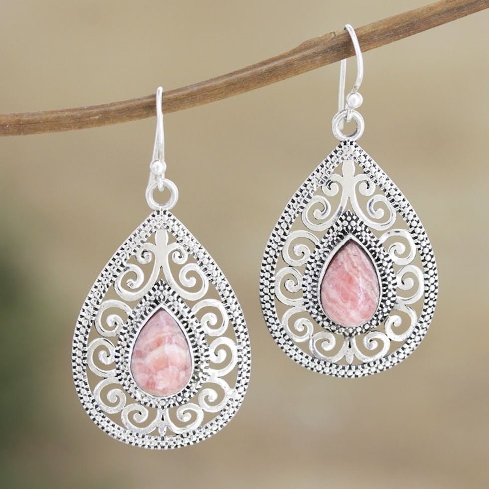 Artisan Handmade Rhodochrosite Earrings 'Paean' Item ID: 2671788356