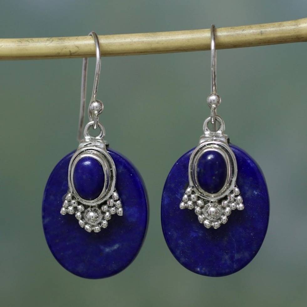 Artisan Jewelry Lapis Lazuli and Sterling Silver Earrings 'Constellations' Item ID: 2669925196