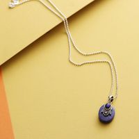 The reason I say this necklace has a "wow factor" is because it is not gaudy and large, and it is not so small it is obscured by the flaws of the human anatomy. The Lapis Lazuli has a deep blue color which almost resembles a rich sapphire, however, the Lapis Lazuli has unique gold flecks of color sparkling out of the blue. The setting is crafted out of sterling silver and the deep blue gems stones against the sterling silver setting are stunning! The necklace lays on the Décolletage perfectly and its juxtaposition to the clothing line is most pleasing..