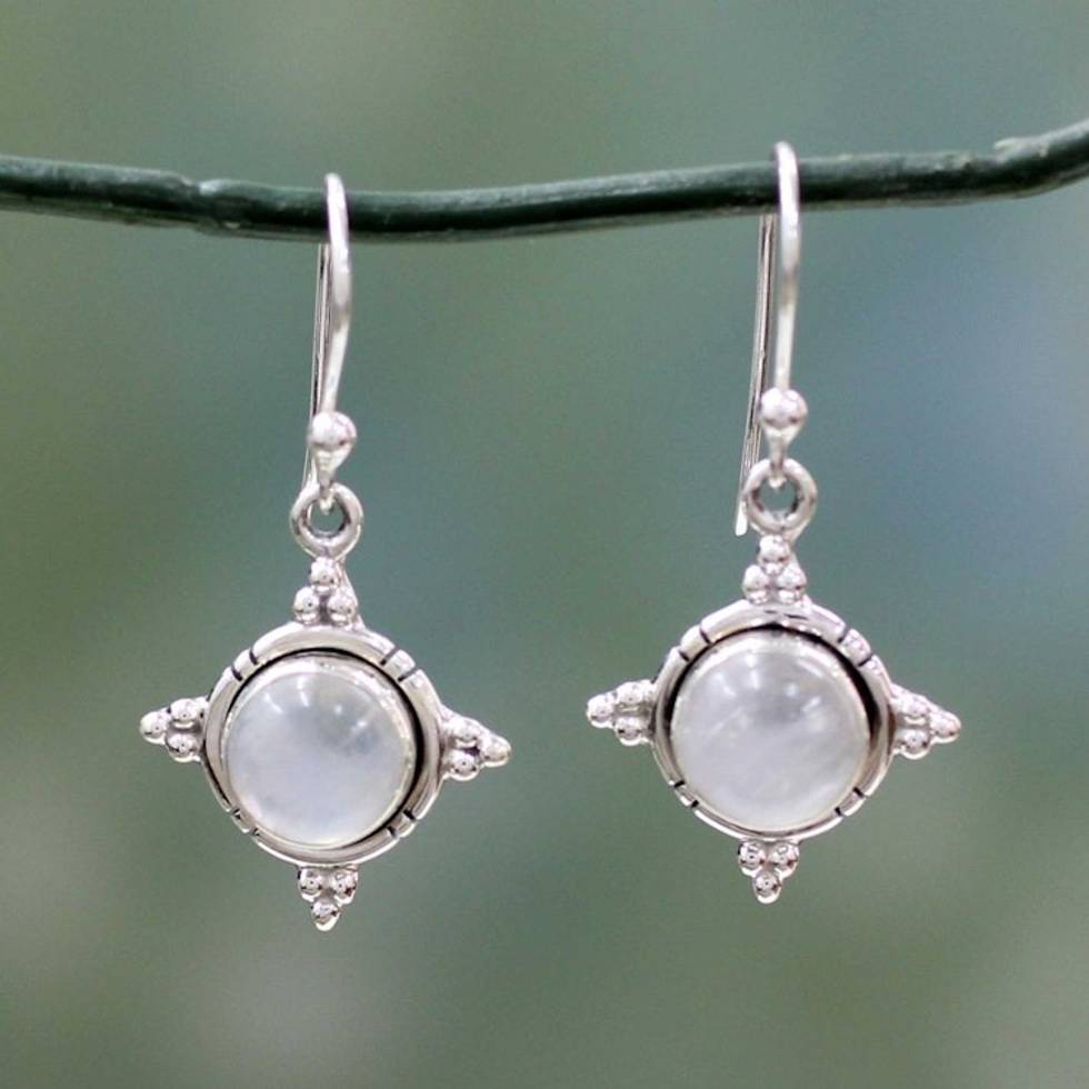 These moonstone earrings are great for daily wear. I really love the checkerboard cut stones! The weight of these earrings is just right for my sensitive ears.