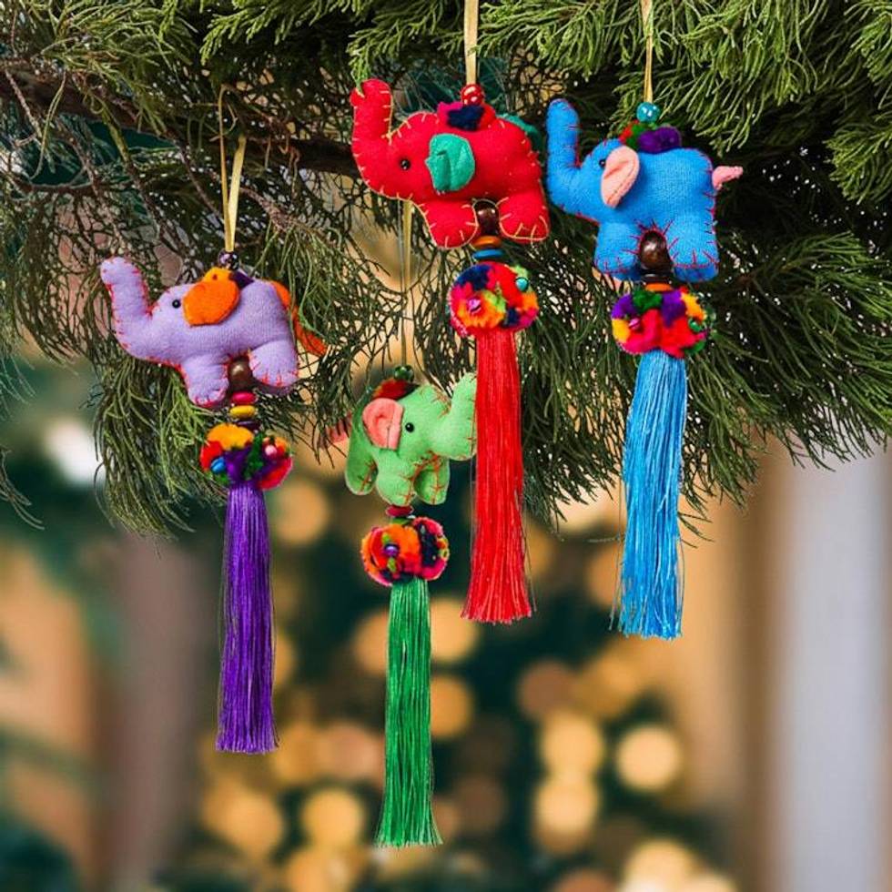 Artisan-Made 4-Piece Cotton Blend Elephant Ornament Set 'Sweet Parade' Item ID: 2676653169