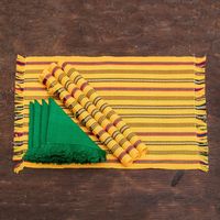 Artisan-Made 8-Piece Yellow Cotton Placemat with Napkin Set 'Palopo in Yellow' Item ID: 2671768878