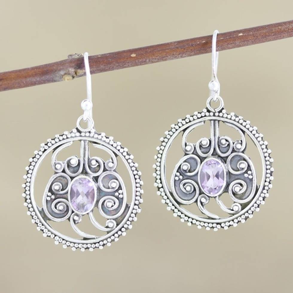 Artisan Made Amethyst and Sterling Silver Dangle Earrings 'Lilac Loop' Item ID: 2671789637
