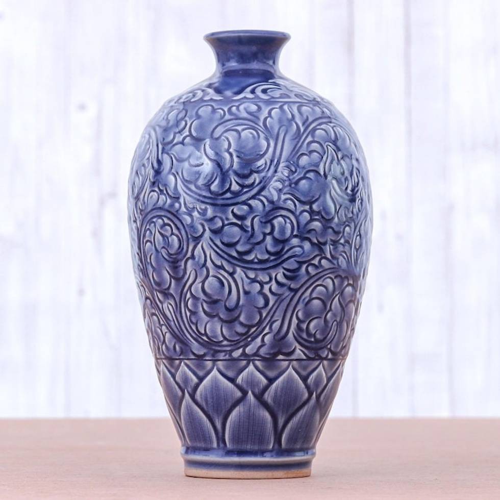 Artisan Made Blue Ceramic Vase 'Blue Flora' Item ID: 2671800473
