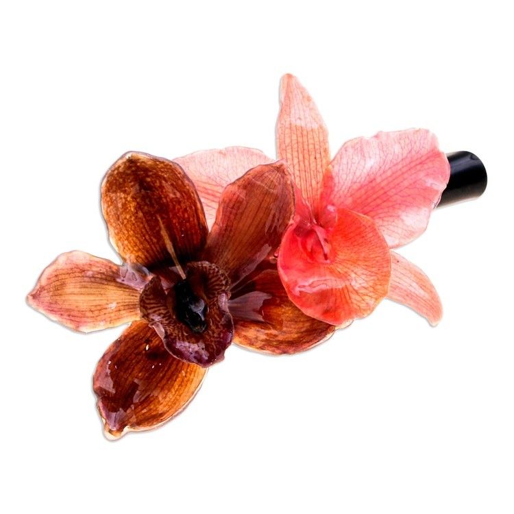 Artisan-Made Brown and Pink Natural Cattleya Bloom Hair Clip 'Sweet Cattleya' Item ID: 2671796666