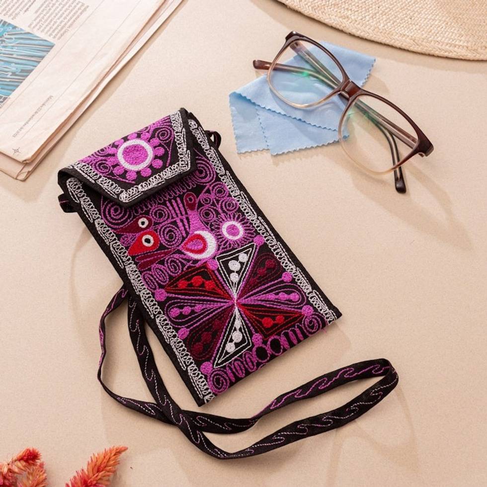 Artisan-Made Embroidered Eyeglasses Case Bag in Magenta Hues 'Magenta Enchantment' Item ID: 2671697954