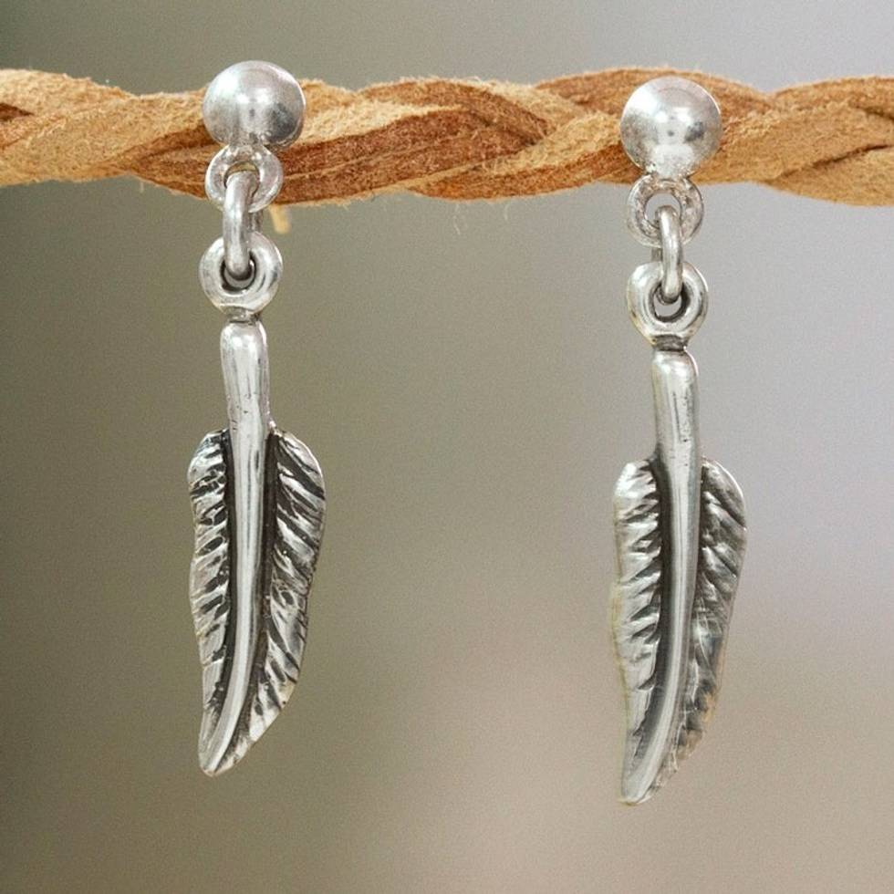 Artisan-Made Feather-Shaped Sterling Silver Dangle Earrings 'Feather Dance' Item ID: 2671798780