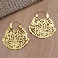 Artisan Made Gold-Plated Brass Hoop Earrings 'Swaying Blossoms' Item ID: 2669921422