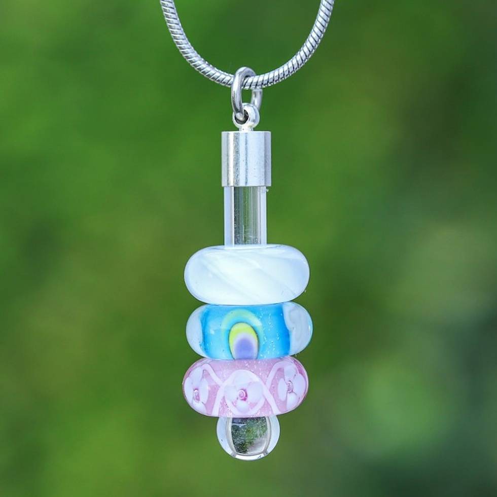 Artisan-Made Multicolor Blown Glass Beaded Pendant Necklace 'Fairy Amulets' Item ID: 2671796896