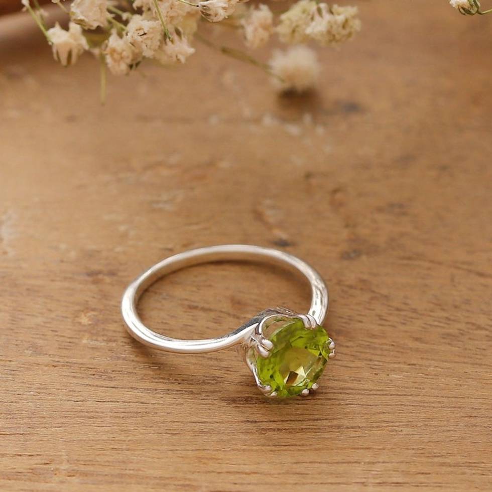 Artisan-Made Natural 2-Carat Faceted Peridot Solitaire Ring 'Delhi Fortune' Item ID: 2671781140