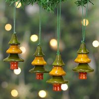 Artisan-Made Set of 4 Wood Channapatna Pine Tree Ornaments 'Festive Pines' Item ID: 2671781426