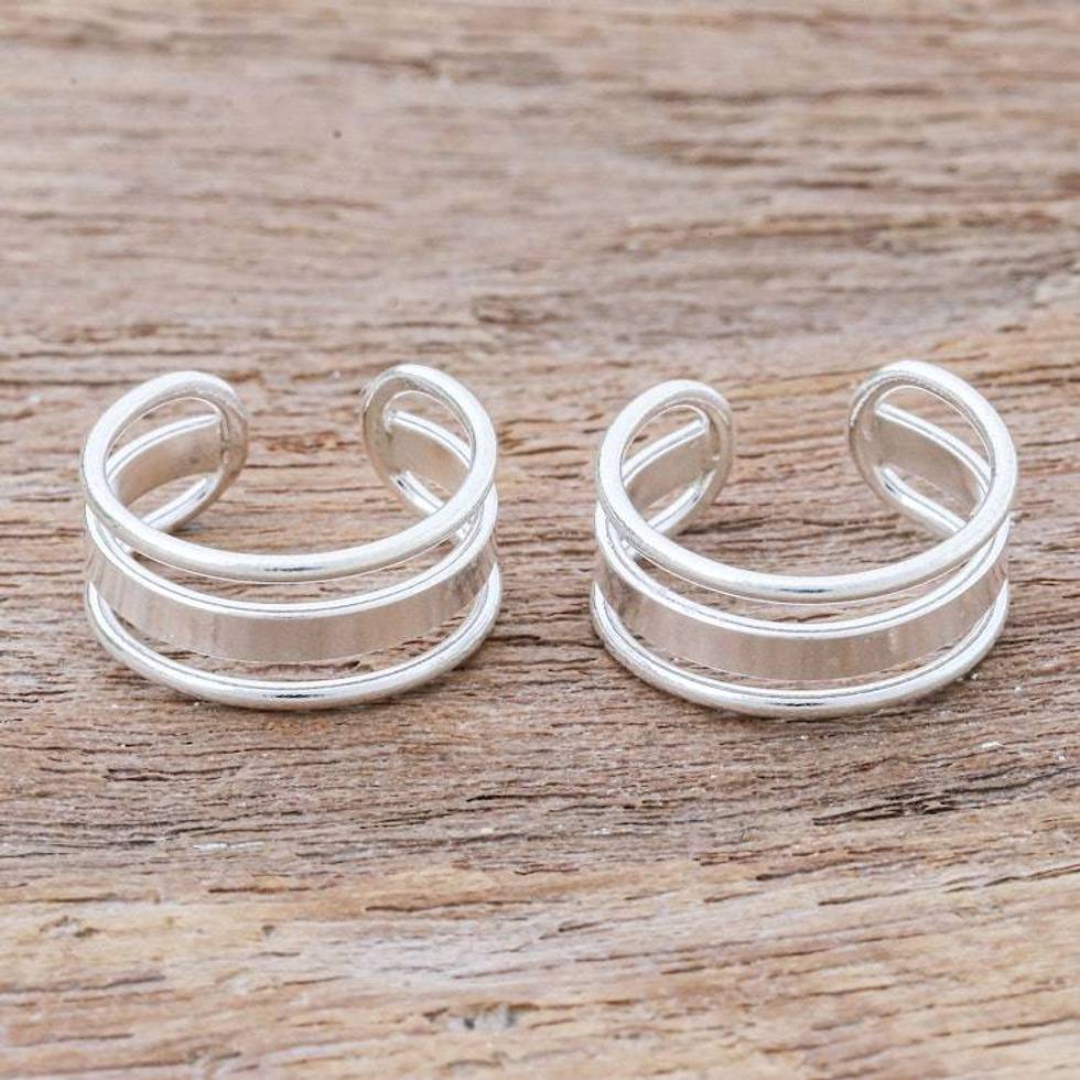 Artisan Made Sterling Silver Ear Cuffs from Thailand 'Cool Day' Item ID: 2676650630
