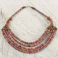 Artisan Multicolor Bead Necklace with Wood Agate and Leather 'Multicolor Wend Panga' Item ID: 2671803913