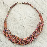 Artisan Multicolor Braided Bead Necklace with Wood and Agate 'Multicolor Sosongo' Item ID: 2671803663