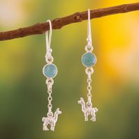 Artisan Opal and Sterling Silver Dangle Llama Earrings 'Llama Light' Item ID: 2671401190