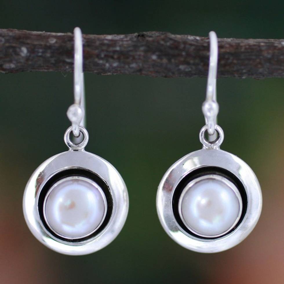 Artisan Pearl Jewelry Earrings from India 'Jaipur Magic Moon' Item ID: 2669944278