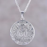Ashtamangala Flower Sterling Silver Pendant Necklace 'Floral Ashtamangala' Item ID: 2671792662