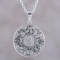 Ashtamangala Motifs Sterling Silver Pendant Necklace 'Sacred Eight' Item ID: 2669955999