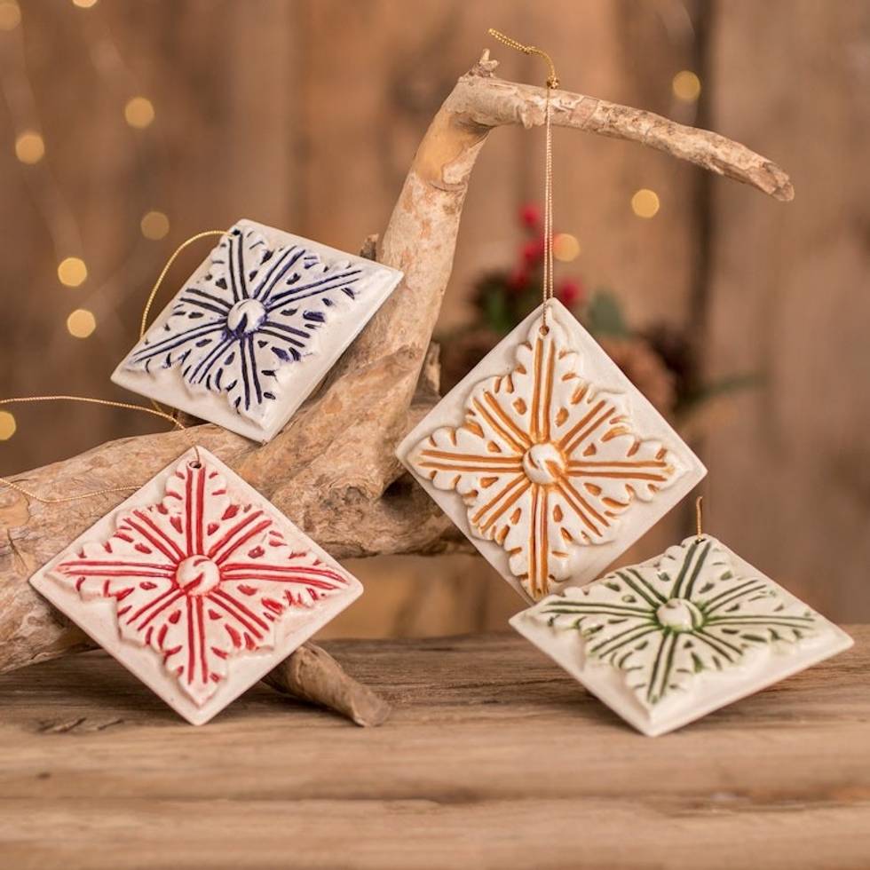 Assorted Color Ceramic Azalea Ornaments Set of 4 'Multicolored Azaleas' Item ID: 2671776848