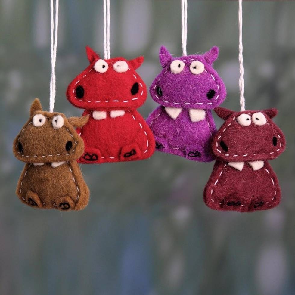 Assorted Color Wool Felt Hippo Ornaments Set of 4 'Curious Hippos' Item ID: 2671793650
