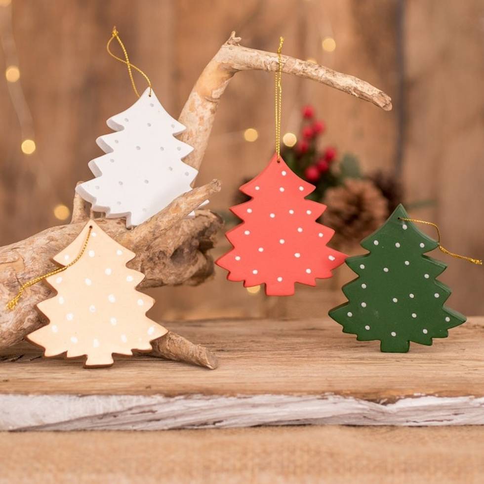 Assorted Wood Christmas Tree Ornaments Set of 4 'Christmas Tree Color' Item ID: 2671776636