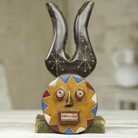 Authentic Ghana Handcrafted Horned African Mask 'Luck Personified' Item ID: 2671803869