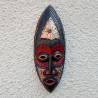 I was immediately attracted to the colors of this mask. They match my sofa and the painting hanging over it perfectly. And of course the expression of the mask is captivating. Sort of a sad face, but also a peaceful face. Love it!Superb crafting and imagination.Marsha