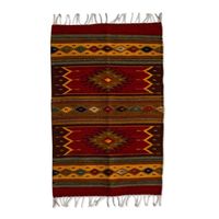 Authentic Handwoven Zapotec Wool Rug 2 x 3 Feet 'Sun Duality' Item ID: 2671808760
