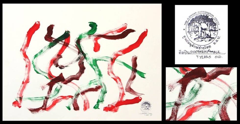 In 1998, searching for new ways to raise rescue funds and worldwide public awareness, elephant expert and author Richard Lair, advisor to the royal Thai Elephant Conservation Center (TECC), conceived of a novel plan. He invited to Asia two media savvy, New York-based conceptual artists - Vitaly Komar and Alexander Melamid - to help him create a publicity campaign while training rescued Asian elephants to paint. Art Historian Mia Fineman traveled with Komar and Melamid to Asia, helping write "When Elephants Paint," a fascinating book about the venture. (The book notes that wild elephants naturally doodle on the ground with twigs and pebbles - a proclivity that might explain the ease with which they take to painting.)