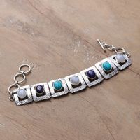 Avant-Garde Blue Multi-Gemstone Link Bracelet Made in India 'Ocean Windows' Item ID: 2671781492