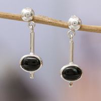 Avant-Garde Natural Obsidian Dangle Earrings from Mexico 'Enigmatic Tomorrow' Item ID: 2671639218