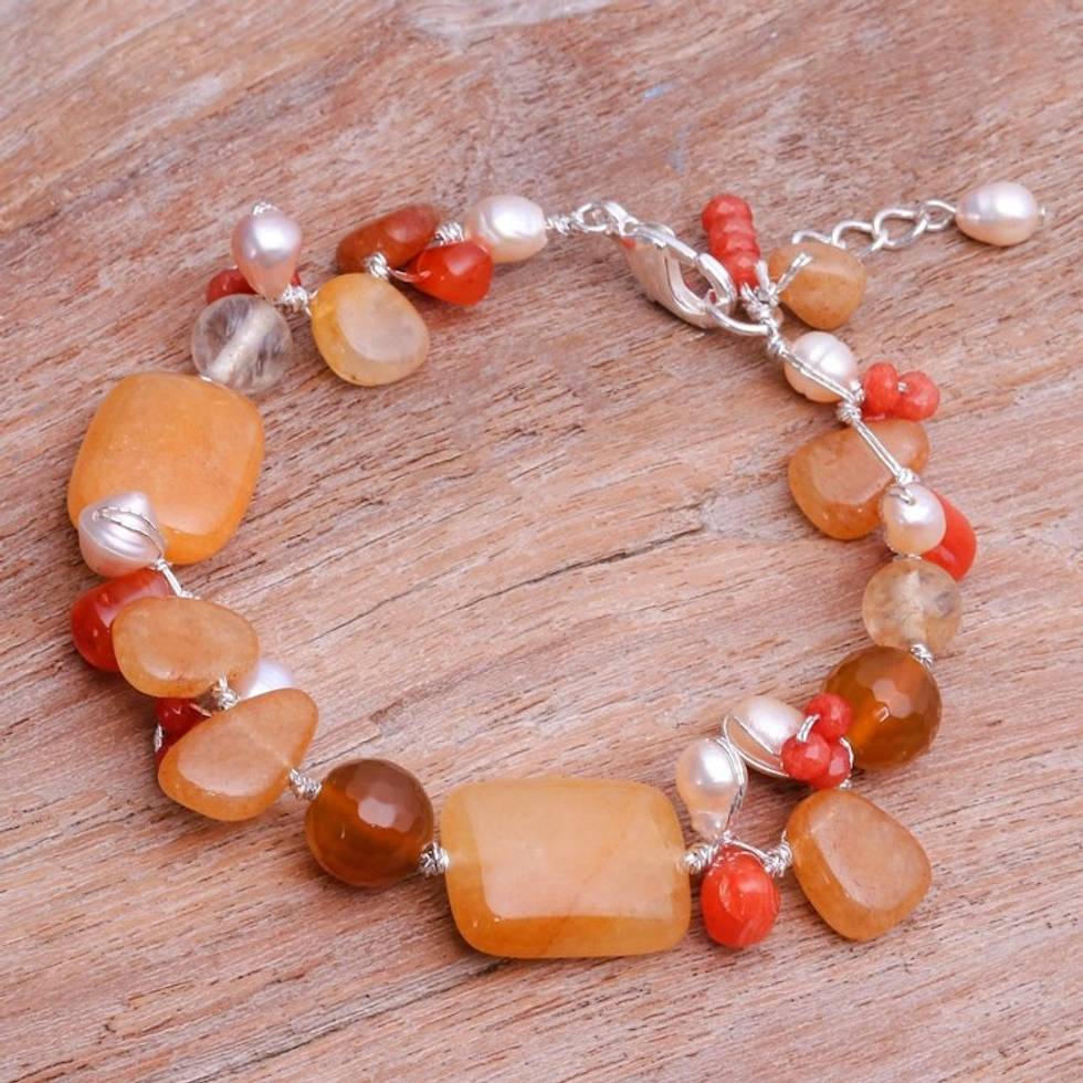 Aventurine and Freshwater Pearl Beaded Bracelet 'Warm Love' Item ID: 2671799782