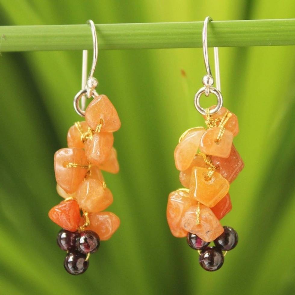 Aventurine and garnet cluster earrings 'Afternoon Passion' Item ID: 2671640972
