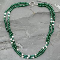 I am very particular about my necklaces. The stones of which they're made hold meaning for me. I was looking for a strong garnet necklace and wanted one that would lay just at the base of my throat. Well, the inner strand of this necklace lays exactly where I wanted while the outer one lays a bit lower, making quite a statement! The silver bead accents wake the whole piece up and keep it from bein... read more