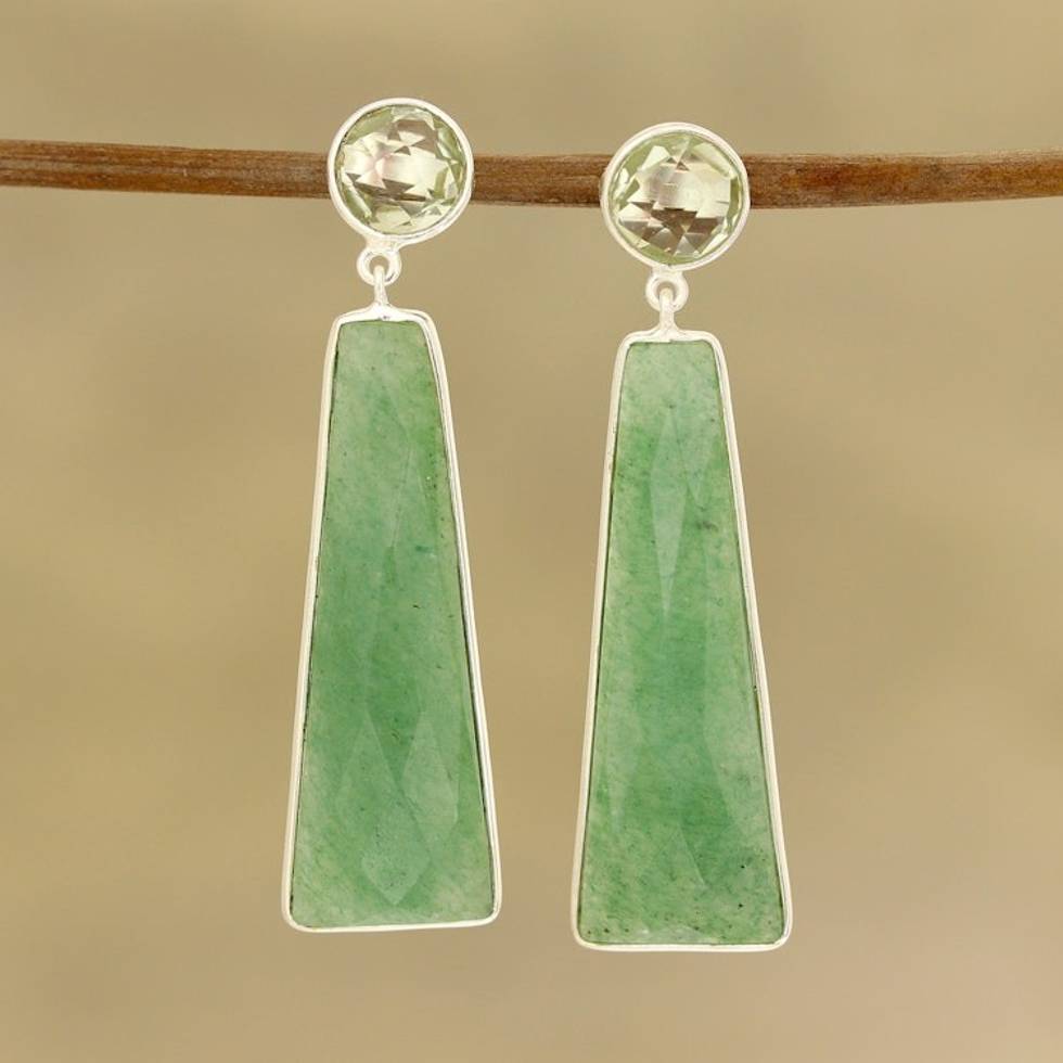 Aventurine and Prasiolite Dangle Earrings from India 'Green Towers' Item ID: 2671789419