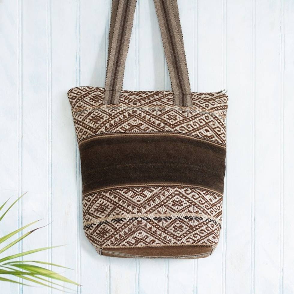 Backstrap Handwoven Brown Alpaca Blend Shoulder Bag 'Chinchero Tradition' Item ID: 2671689711