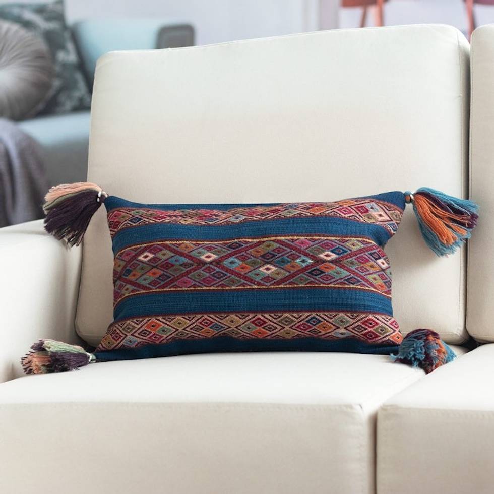 Backstrap Handwoven Colorful Blue Alpaca Cushion Cover 'Blue Inca Rivers' Item ID: 2671819443