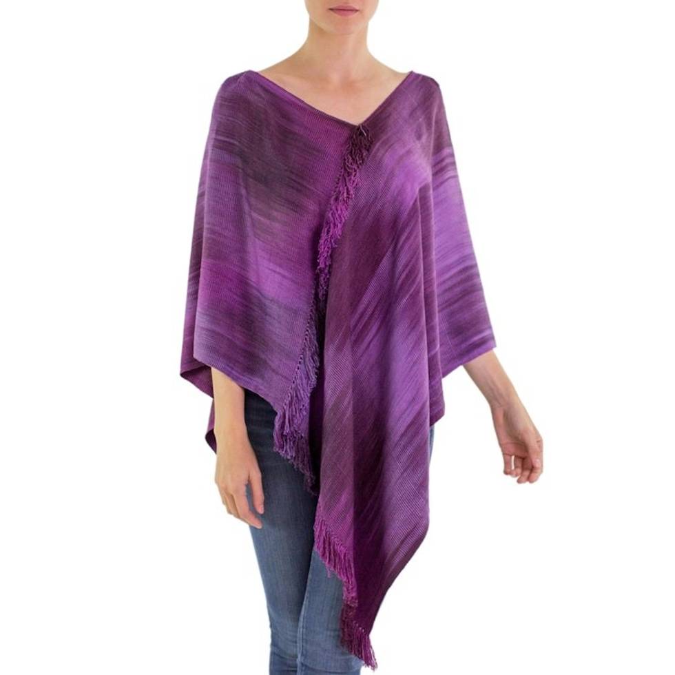 Backstrap Loom Purple Rayon Handwoven Poncho 'Ethereal Lilac' Item ID: 2671626013