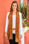 I'm so happy with this scarf. It is absolutely beautiful and very versatile. I made a beautiful outfit for work with it, but can see it used for a more relaxed outfit as well.Thanks so much to the artisans who wove it! Well done!