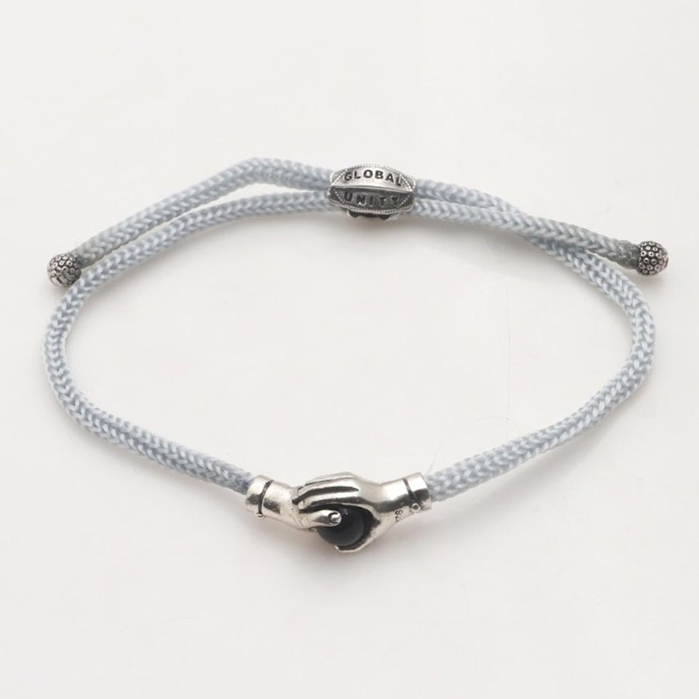Bali Black Agate Sterling Silver Grey Cord Unity Bracelet 'Silver Grey Handshake' Item ID: 2671737787