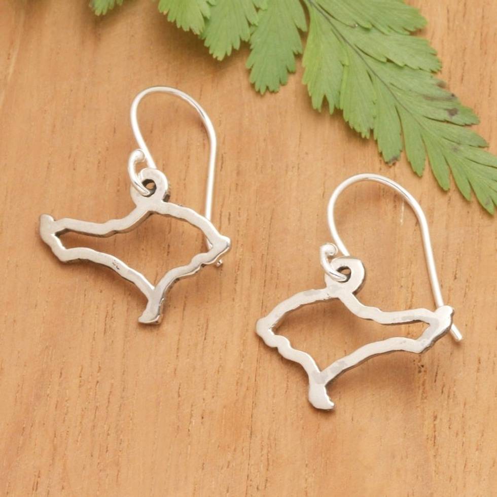 Bali Island Map-Shaped Sterling Silver Dangle Earrings 'Bali Island' Item ID: 2671765616