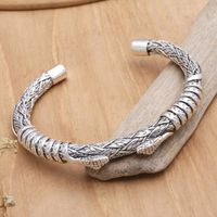 Bali Men's Sterling Silver Cuff Bracelet with Snake Motif 'Woven Snake' Item ID: 2671763159