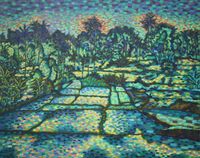 Bali Rice Field Landscape Painting in Greens and Blues 'View of Singakerta' Item ID: 2669889475