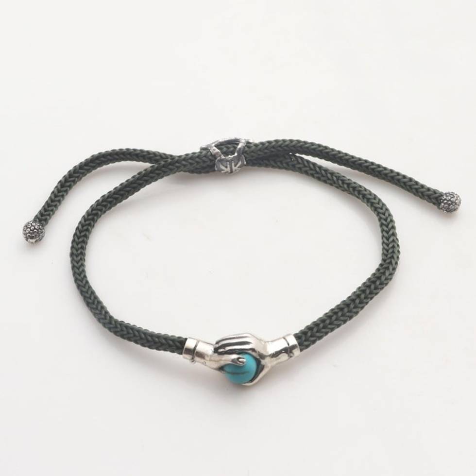 Bali Silver Reconstituted Turquoise Cord Unity Bracelet 'Silver Blue Handshake' Item ID: 2671737034