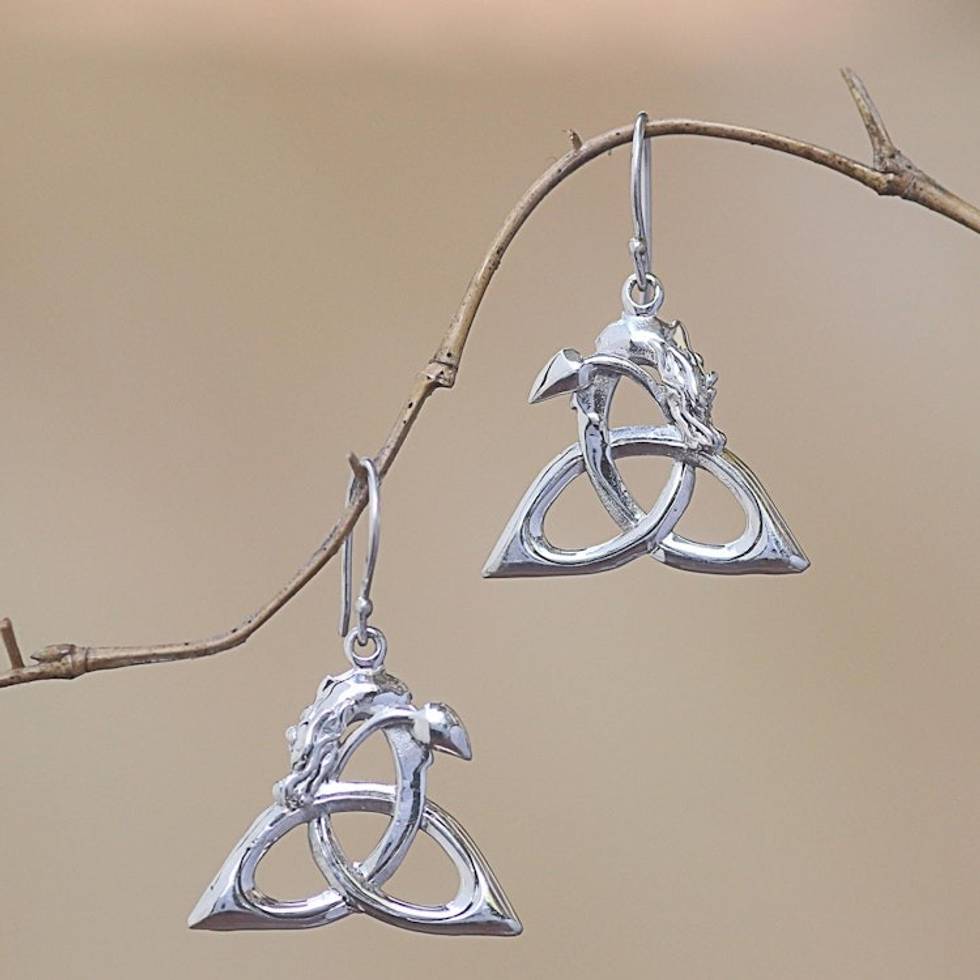 Bali Sterling Silver Celtic Trinity Knot Dragon Earrings 'Dragon Knot' Item ID: 2671478133