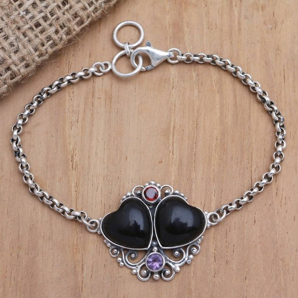 Balinese Amethyst and Garnet Pendant Bracelet 'Double Date' Item ID: 2671747174